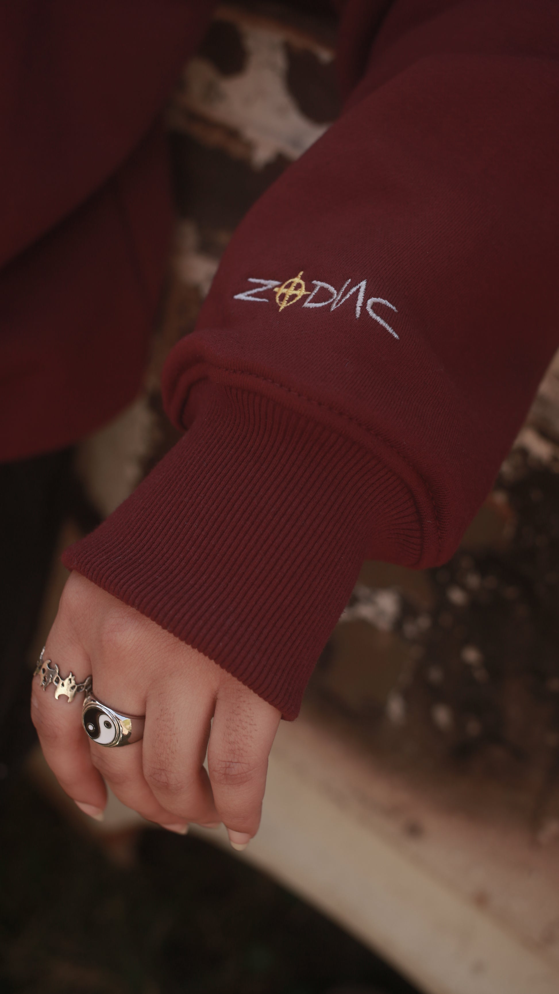 On the left cuff, the embroidered word “ZODIAC” marks the sleeve like a signature — subtle, precise, and quietly sinister. A detail you catch only if you’re paying attention, just like the clues the killer left behind.