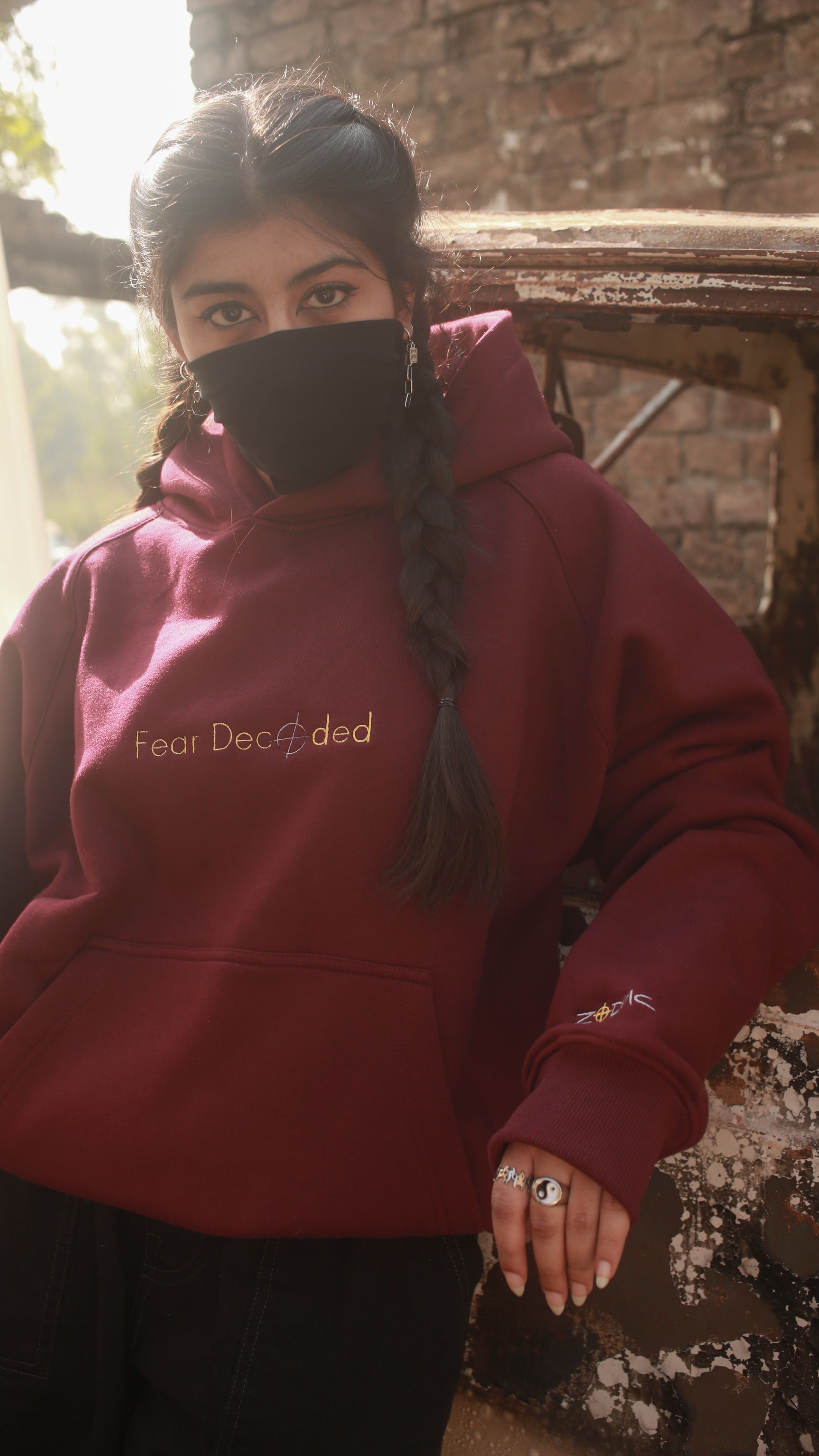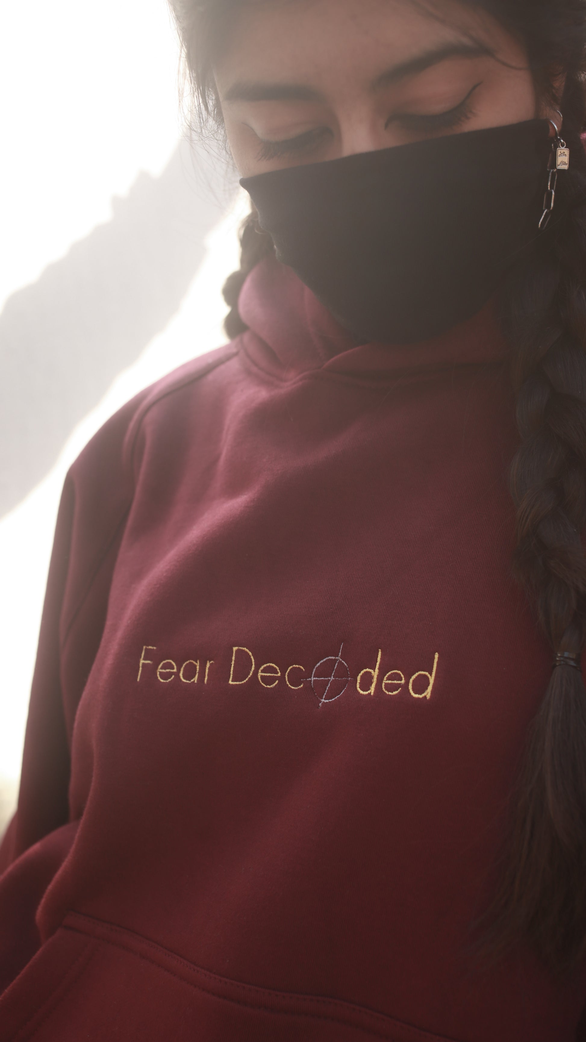 - High-quality front embroidery: “FEAR DECODED”